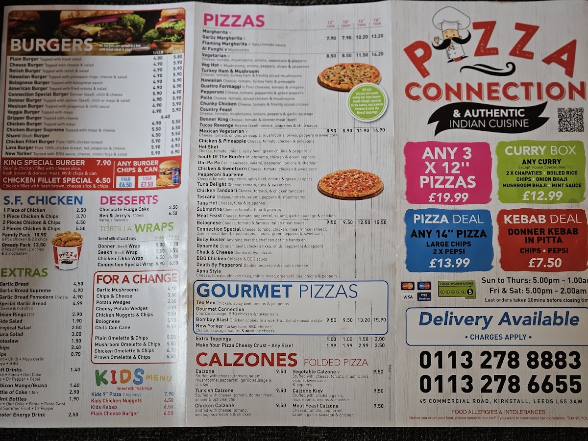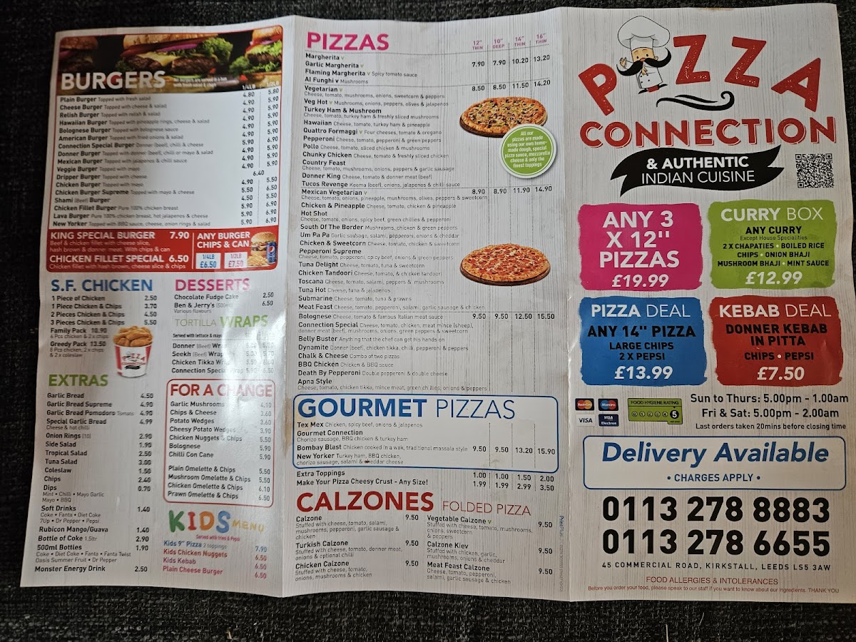 Welcome to Pizza Connection Leeds, where flavor meets convenience! Nestled in Kirkstall, this takeout haven boasts a diverse menu that caters to every palate. Whether you're craving a juicy burger, a hearty wrap, or crispy fried chicken, you'll find it all here.